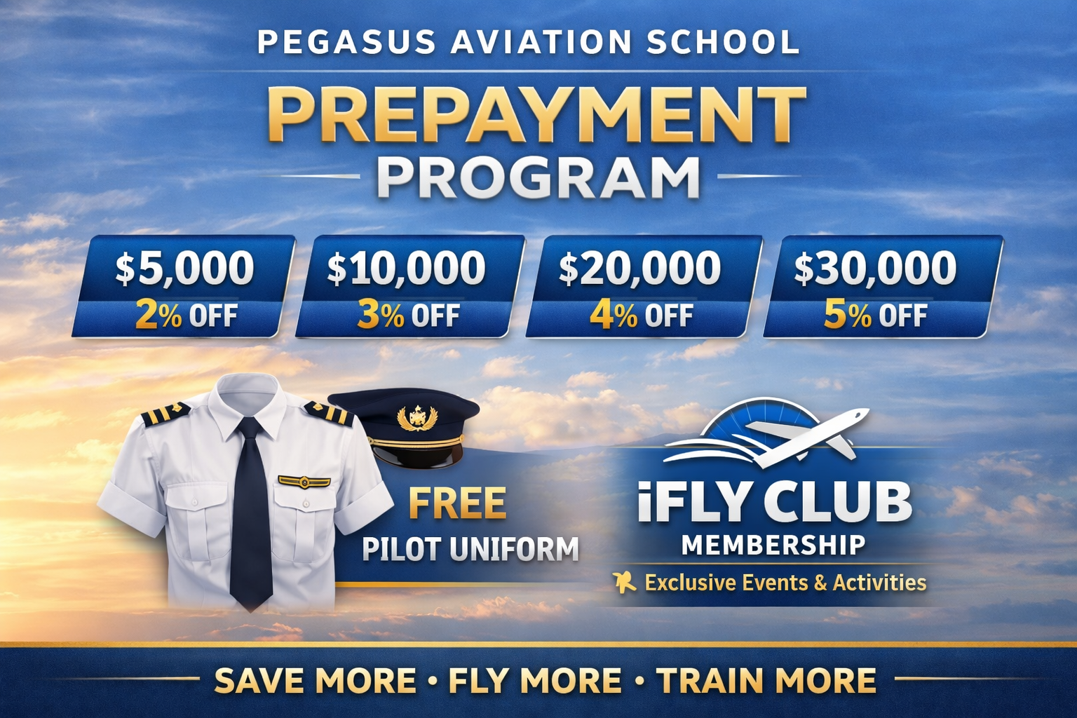 The Pegasus Aviation School Prepayment Plan is designed for students who plan their training long-term and wish to enjoy exclusive savings and member privileges.